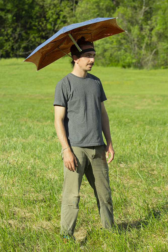 Albedo Hats are reflective apparatuses made from found objects that function as climate change adaptation garments. The albedo effect refers to the positive feedback loop in which snow and ice reflect the sun’s energy, cooling the atmosphere and preserving sea ice, glaciers, and snow packs. Under ordinary conditions this process regulates the earth’s temperature. However, anthropogenic climate change has trapped heat from greenhouse gases causing ice and snow packs that have been deflecting solar rays for millions of years to melt and give way to more heat absorption.