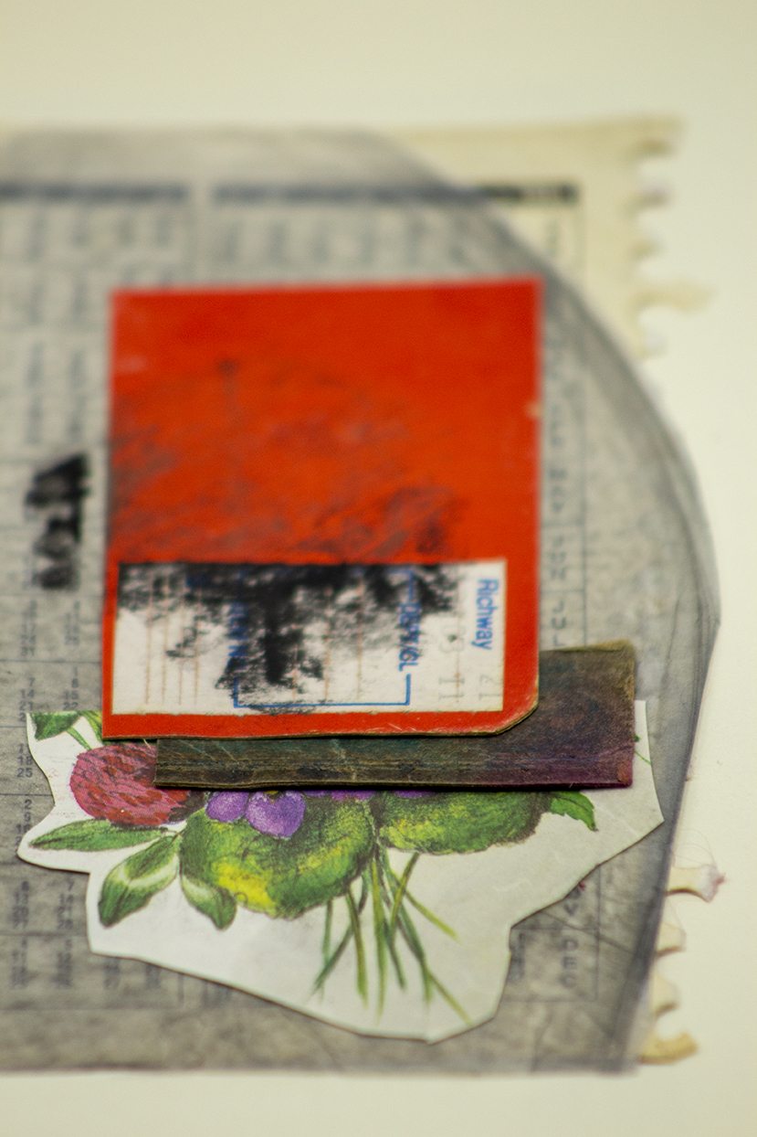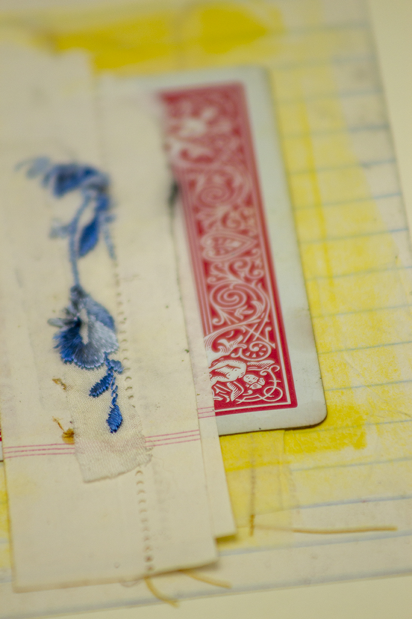 from the Well is a book of collage portraits arranged from materials found in my late Aunt Pat’s home in Madison County, Georgia. Of a few things I’m certain about Patsy: she had a fiery quip to dish in every conversation, she could eat a whole coconut cream cake by herself, her favorite movie was Dirty Dancing, and she loved her stuff. Her home was (and still is), overflowing with the collections of her life: yard sale bargains, kitchenware, baby clothes, games, pictures, jewelry, sewing accessories, romance novels; an infinite repository of the miscellaneous.